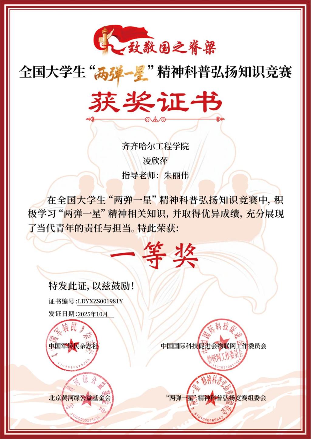 近日,全国大学生“两弹一星”精神科普弘扬知识竞赛圆满落幕。通识教育学院大学物理教研室以课程思政建设为抓手,组织全校150名学生参赛。最终8名学生荣获一等奖、15名学生获得二等奖、30名学生获得三等奖,其余学生均获得优秀奖,展现了我校学子的家国情怀与科学素养。