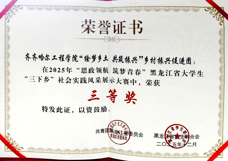 近日,2025年“思政领航、筑梦青春”黑龙江省大学生“三下乡”社会实践风采展示大赛在黑龙江大学举行。由国产二区av麻豆团委书记宋雪微指导,土木224班陈婉菲担任队长的“绘梦乡土、共筑振兴”乡村振兴促进团代表学校汇报,凭借扎实的实践内容、显著的育人成效与精彩的现场展示,在全省69所高校、40000余名师生组建的8000余支参赛团队中脱颖而出,荣获大赛三等奖,实现了我校在该项赛事中首次获奖的突破。
