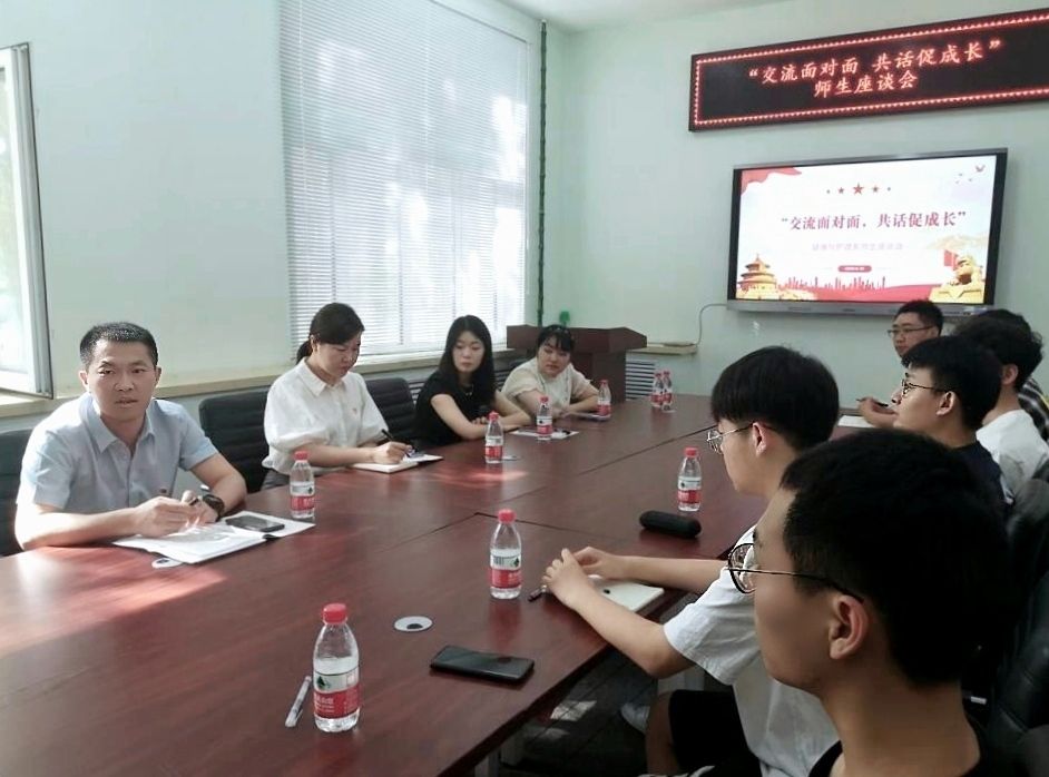 “学校党委正在开展学习贯彻习近平新时代中国特色社会主义思想主题教育活动,想通过座谈会的形式,了解你们在学习、生活和工作中还存在哪些问题、困惑,或者对教育教学、社团活动和学生管理等方面有哪些意见和建议”。郭伟东书记首先指出座谈会的目的,并与学生代表们亲切交谈。学生代表们畅所欲言,对学生公寓管理、校园硬件设施改造、学生党员发展以及日常学习、生活等方面提出意见和建议。