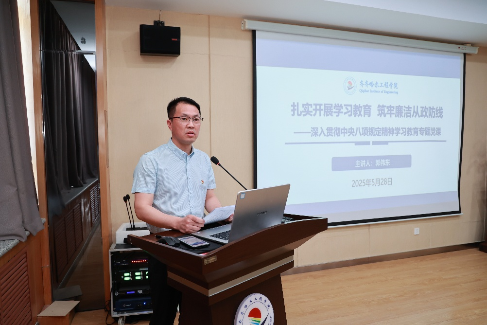 郭伟东在党课中深入阐述了开展深入贯彻中央八项规定精神学习教育的重要意义。他强调,此次学习教育是纵深推进全面从严治党的关键举措,通过党性党风党纪一体抓、正风肃纪反腐相贯通,巩固拓展主题教育成果;是密切党群关系、巩固执政基础的必然要求,以作风建设新成效取信于民;更是推进中国式现代化的有力保障,引导党员干部树立正确权力观、政绩观,以优良作风激发担当作为。
