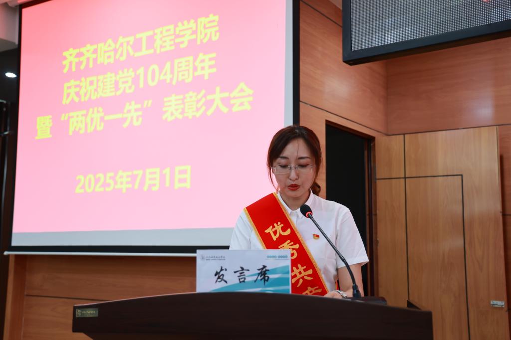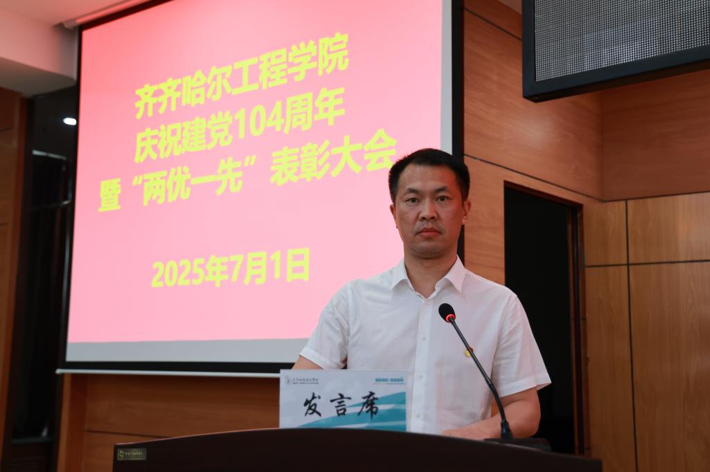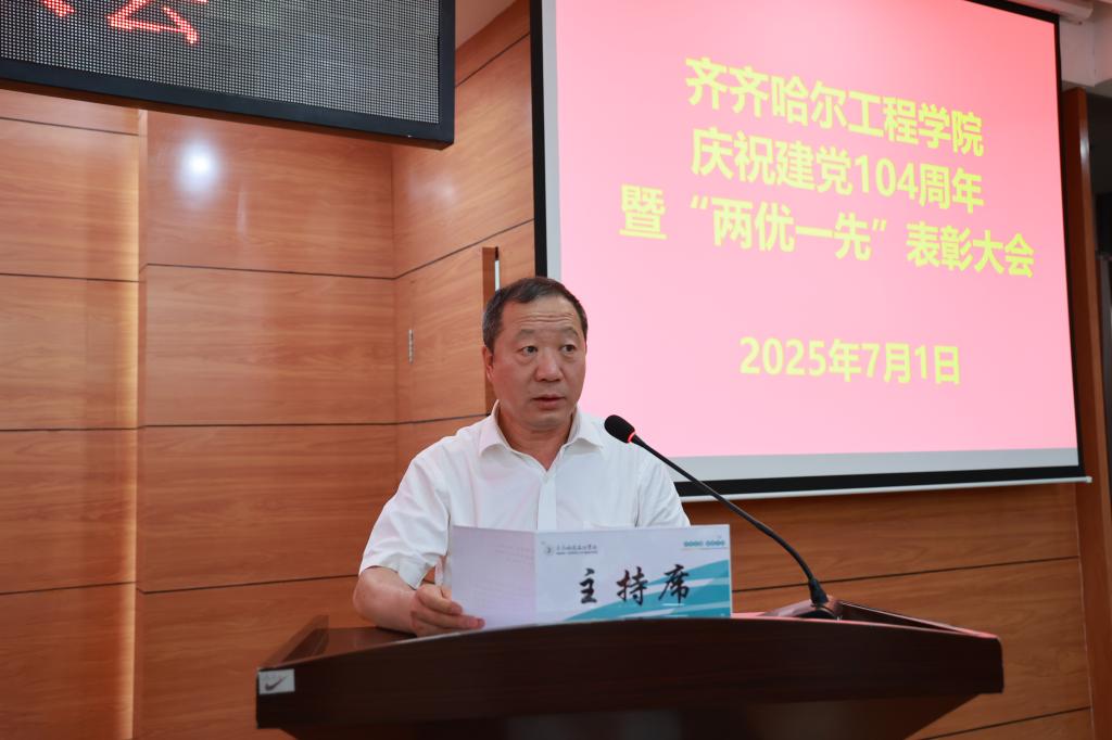 为庆祝中国共产党成立104周年,表彰先进,进一步激励全校各级党组织和全体党员推进党纪学习教育走深走实、推动学校党建与业务工作深度融合,7月1日下午,学校在图书馆601报告厅举行庆祝中国共产党成立104周年暨“两优一先”表彰大会。校级党员领导干部、受表彰的先进集体代表、先进个人以及师生党员参加。