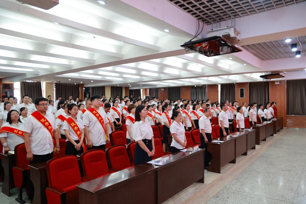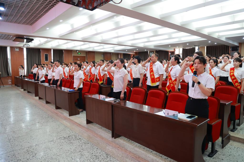 校党委委员、党委组织部部长王丹带领全体党员重温入党誓词,党员们举起右拳,庄严宣誓,表达了对党的忠诚和为共产主义事业奋斗终身的坚定信念。