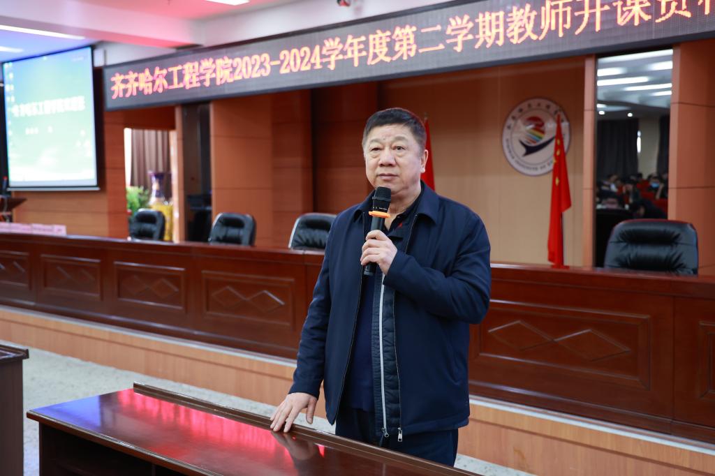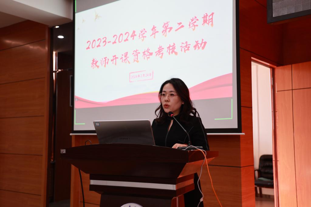 2月24日上午,学校在图书馆601报告厅开展2023-2024学年度第二学期教师开课资格考核活动。理事长曹勇安教授出席并担任特约评委,副院长张静及各教学单位副主任担任评委。各教学单位领导及全体专业负责人、任课教师线下参会,其他教学相关人员线上参会,教务处副处长郝丽娜主持此次活动。
