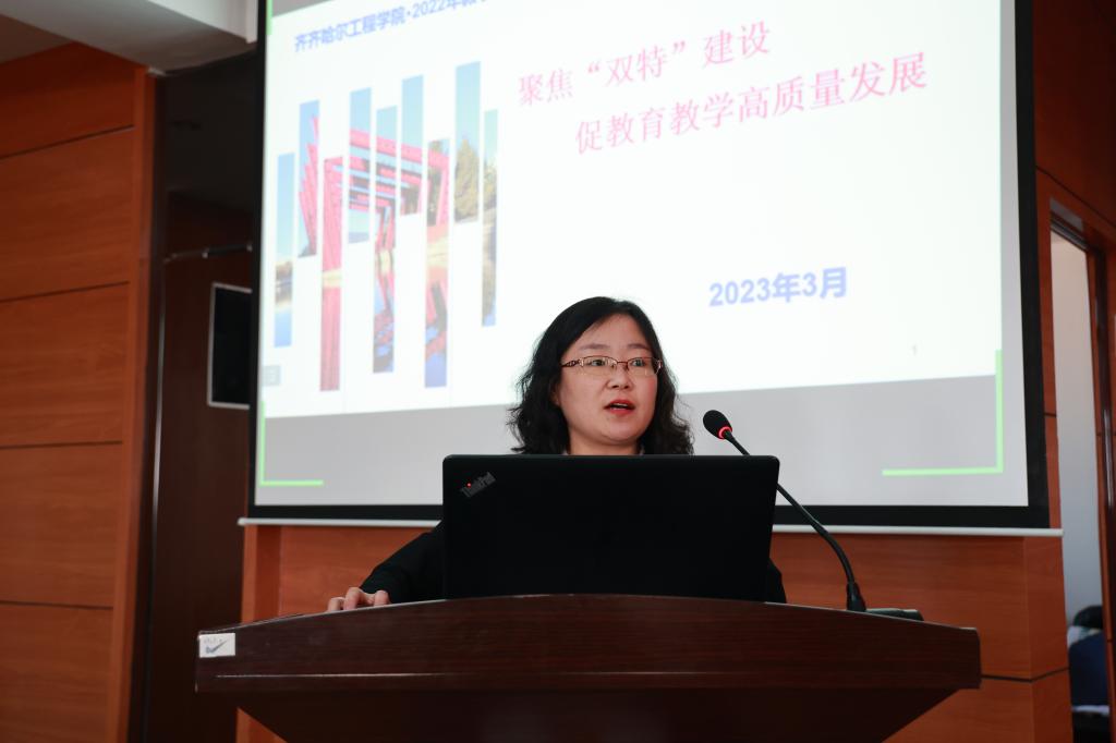 教务长张静作题为《聚焦“双特”建设,促教育教学高质量发展》的报告,她从审核评估、课程改革、专业实践和师生竞赛四个角度总结了2022年学校教学工作取得的成绩;结合新形势和新要求,对2023-2025年学校立足“双特”建设、实施教学质量提升工程进行了规划;从审核评估、大思政课建设、产教融合、教学研究等方面,部署了2023年教学重点工作;对本年度课堂教学质量提升从八个方面做了详细安排。指出,学校要持续深化教学改革和产教融合,凝练应用型人才培养特色。