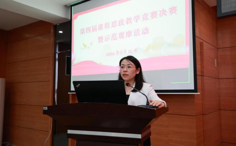 8月26日下午,学校在图书馆601举行第四届校级课程思政教学竞赛决赛暨示范观摩活动。院长、党委副书记曹然彬,副院长张静出席活动,相关职能部门、教学单位负责人及全体教工线上线下观摩。活动由教务处副处长郝丽娜主持。