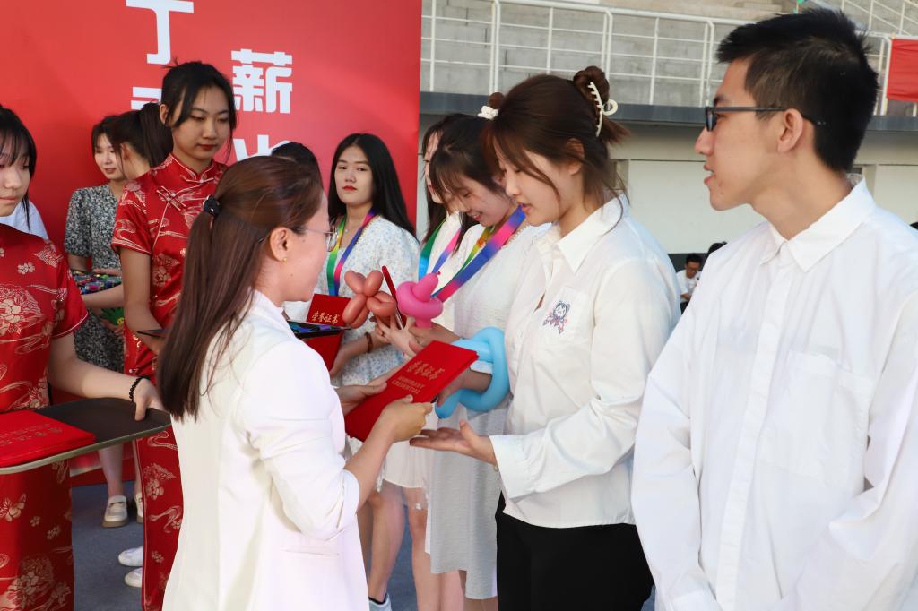 郭伟东书记、陈景鑫院长助理、各系主任上台,为获奖者颁发丁香奖章和证书。