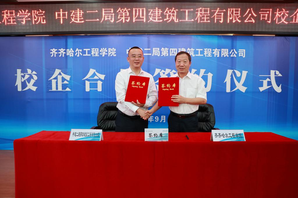 9月14日,学校与中建二局第四建筑工程有限公司在图书馆601报告厅举行校企合作签约仪式。中建二局第四建筑工程有限公司党委常委、副总经理胡超,东北分公司总经理范捷、党委副书记韩子民,副总经理阎雨升、吴昊,项目经理战乃超,学校理事长曹勇安、院长曹然彬、副院长张静、建筑工程系副主任徐明、基建办主任崔晓东出席签约仪式。仪式由张静主持,学校骨干学习班成员、建筑工程系教师及学生代表参加。