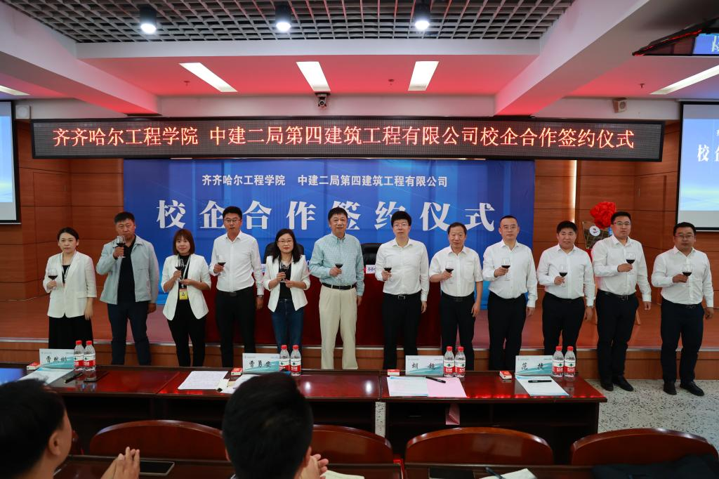 曹理事长指出,中建二局第四建筑工程有限公司以其多样化的经营模式走在了施工企业的前列,成为建筑企业的领头羊,相信以此次产教融合实践基地建设为契机,今后在人才培养、队伍建设、技术创新、科学研究、实习就业等领域,双方将开展更广泛深入合作,实现教育链、人才链、产业链与创新链的无缝对接,发挥各自优势,互利合作,构建校企共赢的共同体,提升应用型人才培养质量。