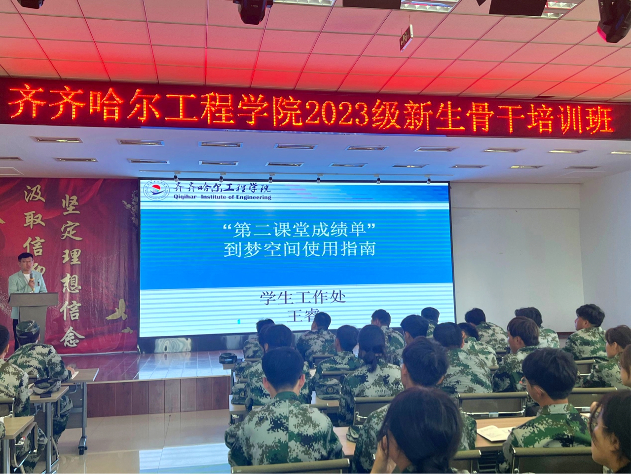 9月4日,2023级新生骨干培训班开班式在二教2508室举行,校党委副书记张振笋、学生工作处负责人王丽萍、各系团总支书记出席,2023级新生骨干182人参加本次培训班。培训开班式由团委副书记王雪主持。