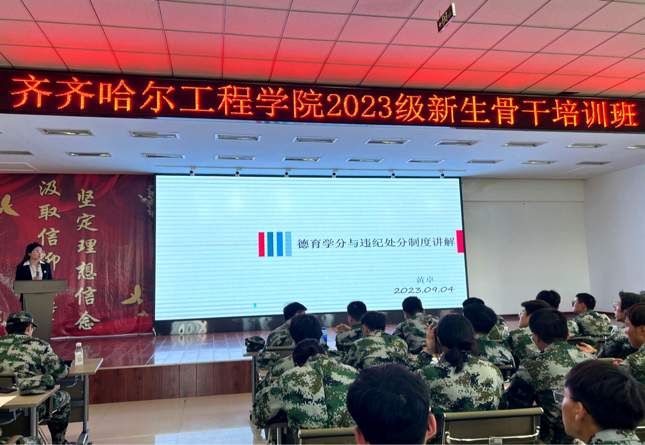 学生工作处黄卓老师讲解学生德育学分与违纪处分制度。讲授内容涵盖三五能力、校规校训等,引导学生树立正确的价值观念和道德准则,促进学生的全面成长与发展。