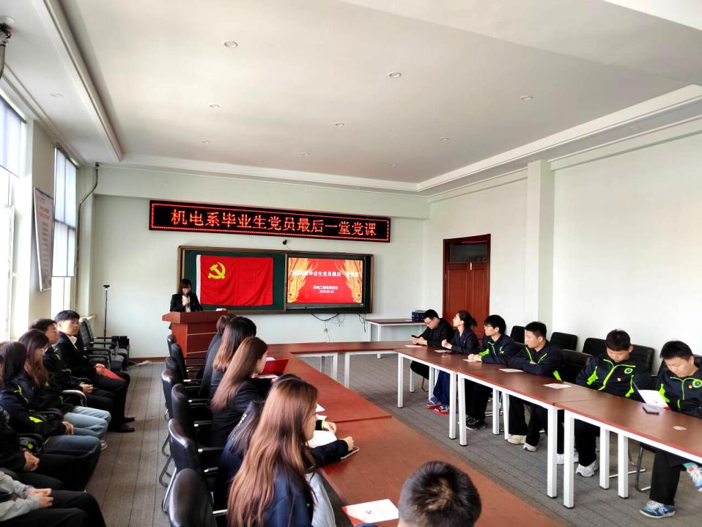 为毕业生党员上最后一次党课,是机电工程系党总支工作的重要内容。毕业生党员再一次接受党性教育,是一次锤炼党性、凝心铸魂的思想政治洗礼,进一步坚定了毕业生党员的理想信念和宗旨意识。希望2024届毕业生党员牢记母校嘱托,担当青年使命,以昂扬姿态踏上人生的新征程,以奋进青春建功新时代,以实际行动为母校增光、为党旗添彩,让青春在全面建设社会主义现代化国家的火热实践中绽放绚丽之花。