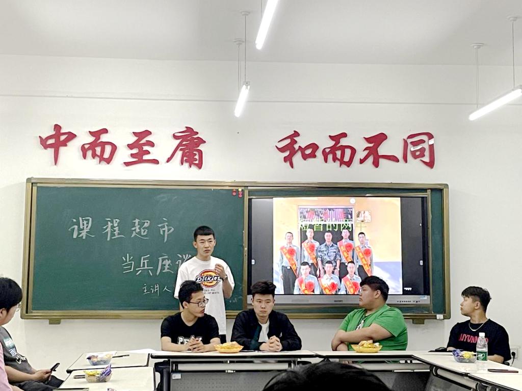6月3日,退役士兵土木202班刘宪达同学为参加课程学生分享自己的军旅生涯,并讲解入伍申报条件、入伍政策等方面内容。他的分享不仅让学生感受到军人的坚韧与担当,同时也为学生提供就业的一个新方向,更激发了学生对于参军报国的热情和向往。