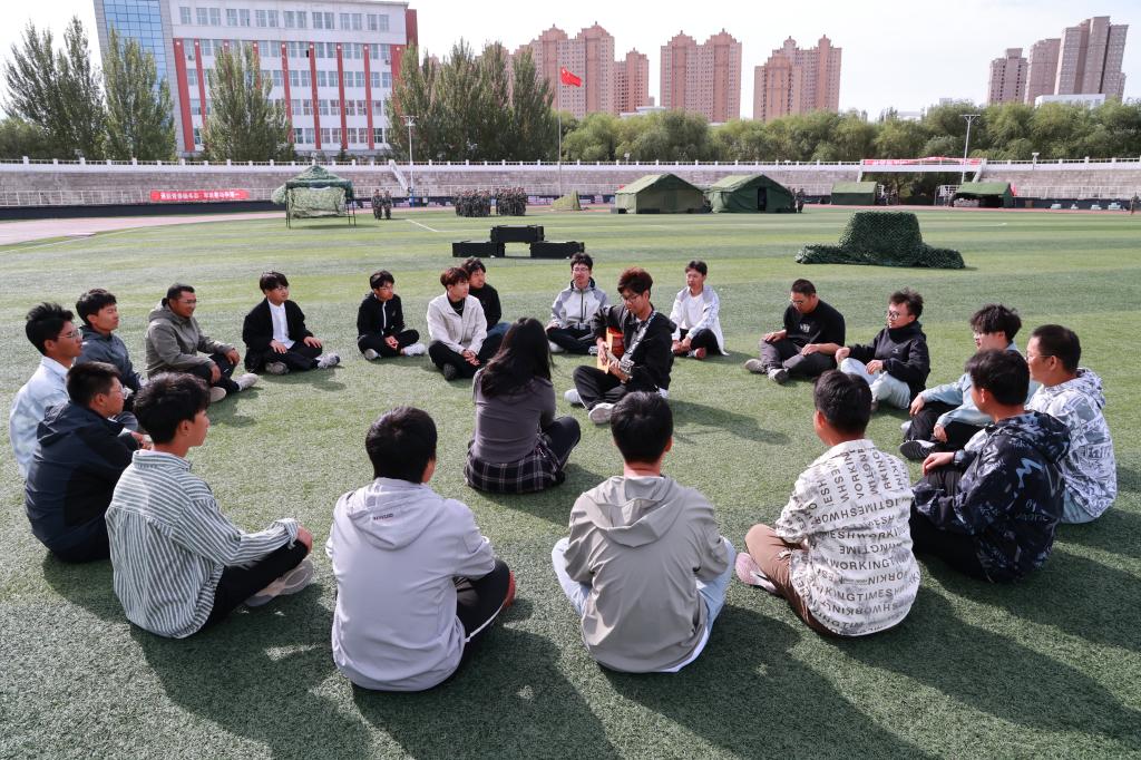 在汇报表演中,学生演示了训练科目。表演了原创情景剧《热血男儿参军去》,生动展现了青年学子从宁静校园到火热军营,再到边境反击的英勇历程,赢得了在场师生的共鸣与掌声。