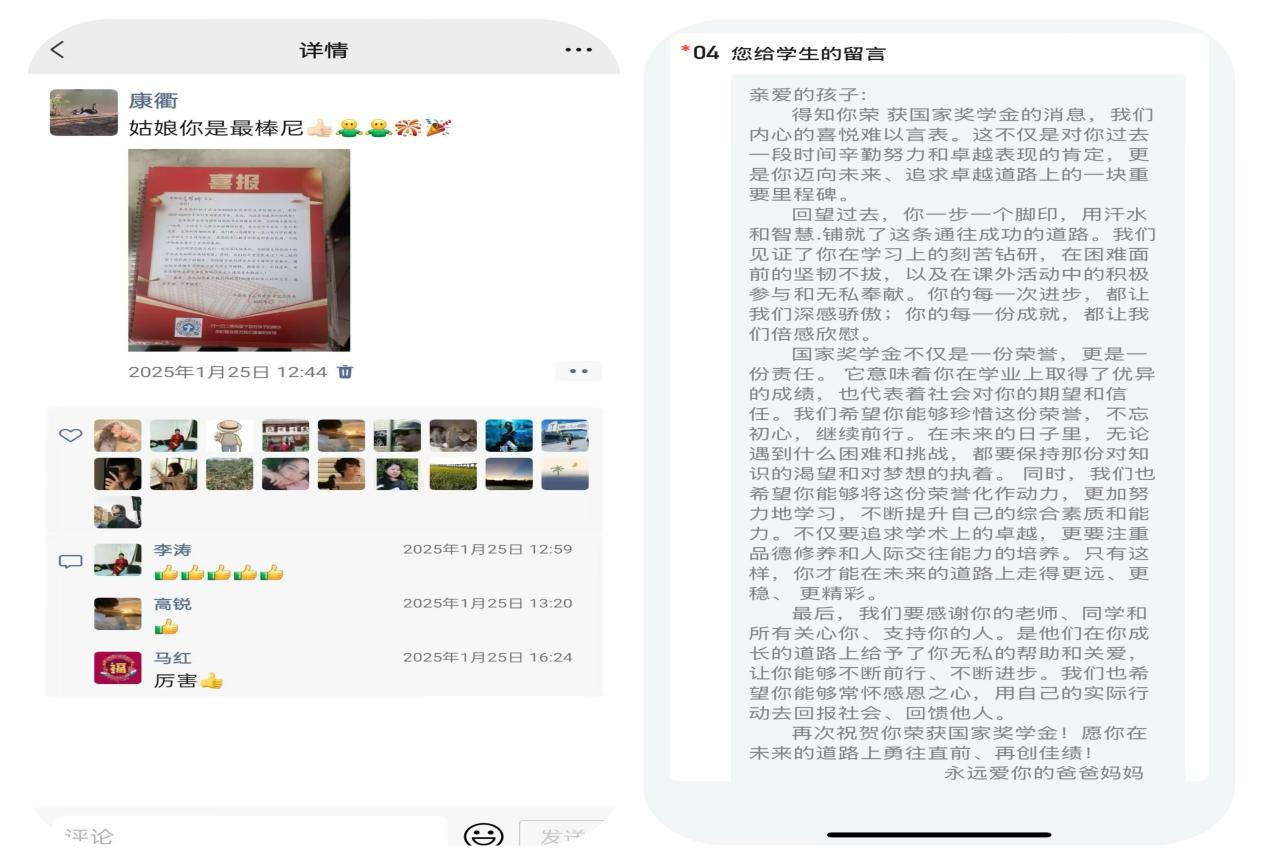 收到喜报的家长对学校的人文关怀和育人温度表示了真诚感谢,并发朋友圈表达收到喜报后的兴奋激动心情。获奖学生纷纷表示,会将这份荣誉带到未来的学习和生活中,努力学习,再创佳绩,以实际行动践行学校“亮剑”精神。