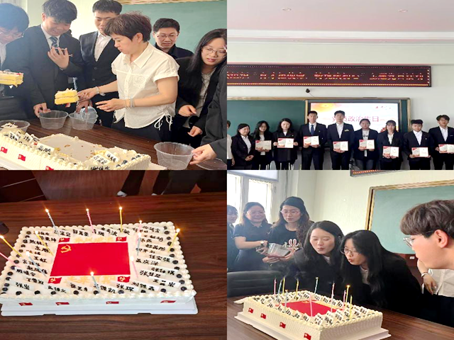 教师吕嵩岩、陈博,学生张琛、徐铭含分别作为教师和学生党员代表上台发表生日感言,分享自己的工作和成长经历。