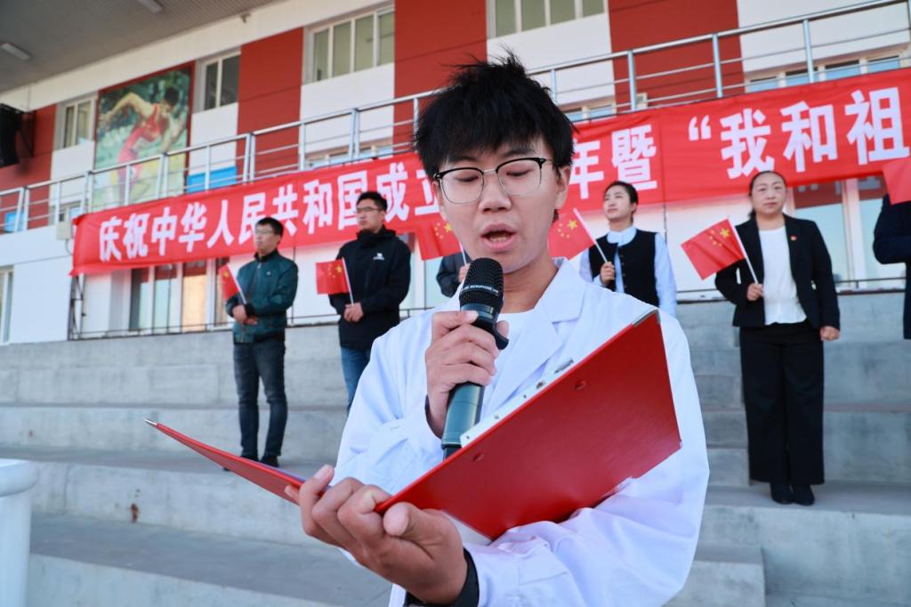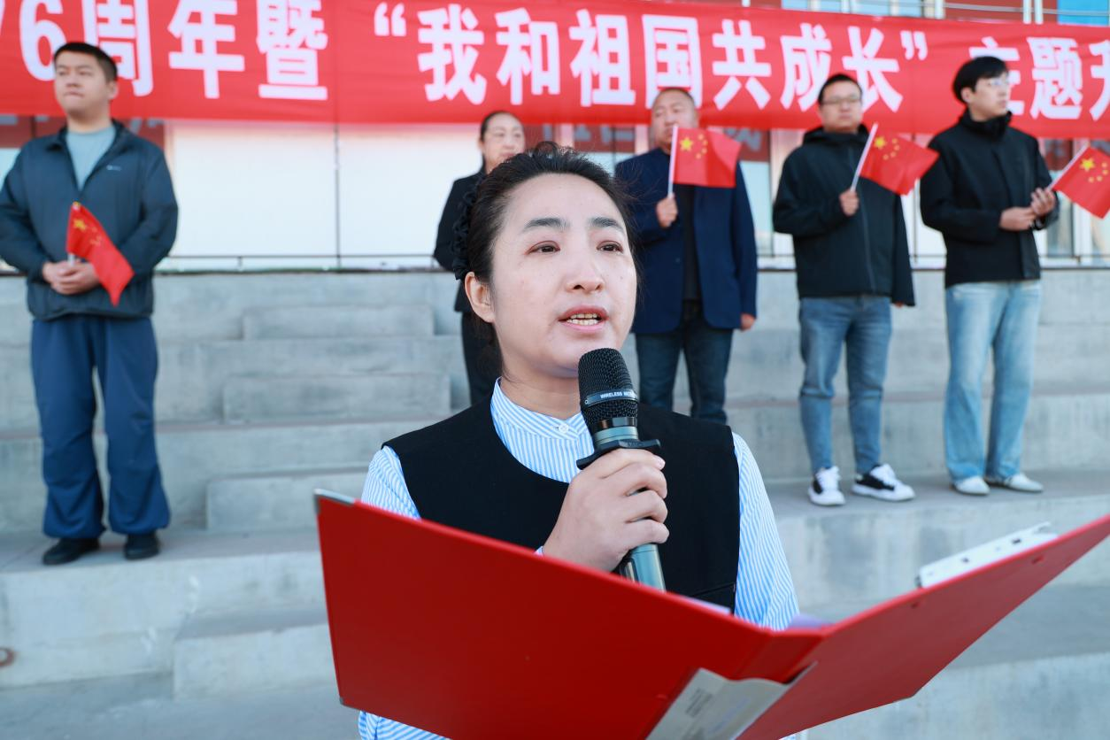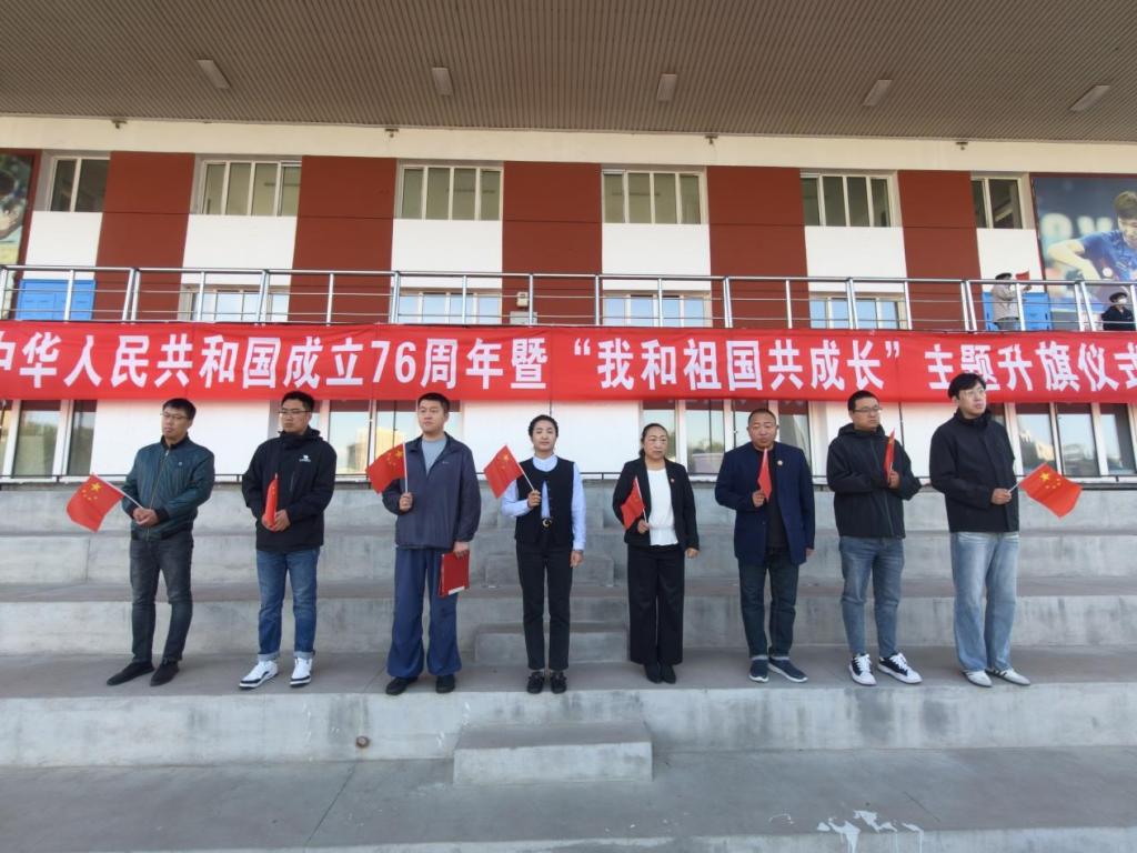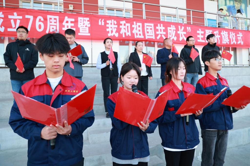 76年砥砺奋进,76年春华秋实,为庆祝中华人民共和国成立76周年,激发全校师生爱国情,9月30日,庆祝中华人民共和国成立76周年暨“我和祖国共成长”主题升旗仪式在我校体育场举行。学校党委副书记、纪委书记、副校长陈景鑫出席仪式,学生工作处处长王丽萍、副处长孙晓芳,团委书记高士涵,各二级学院党委副书记、辅导员、全体2025级新生参加。