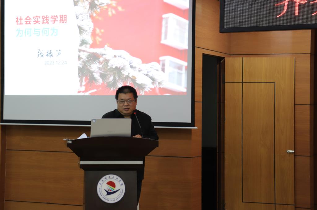 122419时,2023-2024学年度社会实践学期开学式在图书馆601举行。校党委副书记张振笋、学生工作处、各系相关负责人员、辅导员、生涯导师、学生及家长4000余人线上线下参加会议。