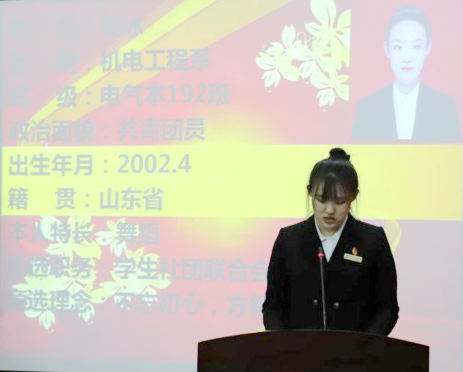 学生社团联合会组织部部长侯冰宣读第十一届学生社团联合会主席团候选人名单。