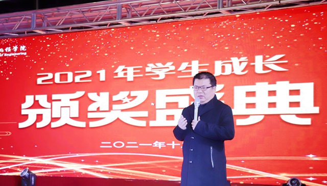 12月15日18时,学校2021年学生成长颁奖盛典在学生活动中心三楼隆重举办,根据疫情防控要求,此次颁奖盛典采用线上抖音直播的方式进行。学院副院长张振笋,学生工作处副处长郭明敬,各系学生工作副主任,团委指导老师张云惠、孙名序、获奖集体及学生代表线下参加此次颁奖典礼。