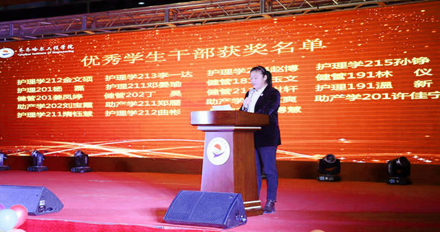 在爱的奉献篇章,学生工作处副处长郭明敬宣读《关于表彰2021年学生先进集体、优秀个人的决定》。