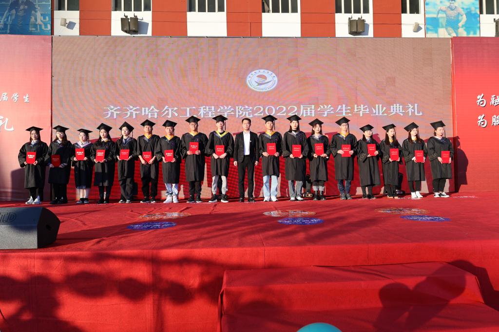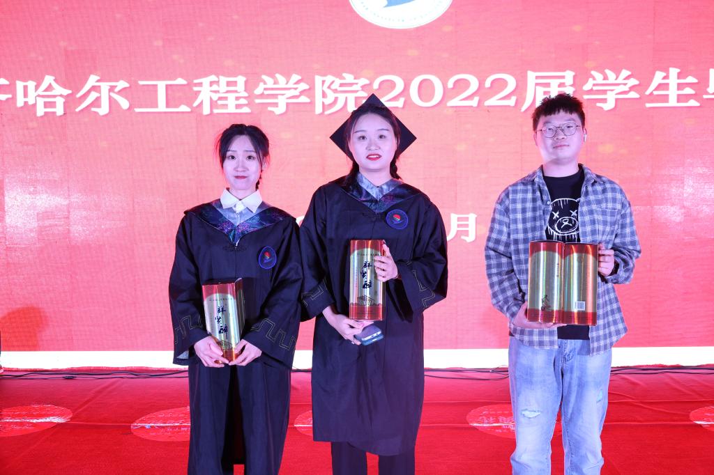 党委书记郭伟东为优秀毕业生获奖代表颁发荣誉证书。