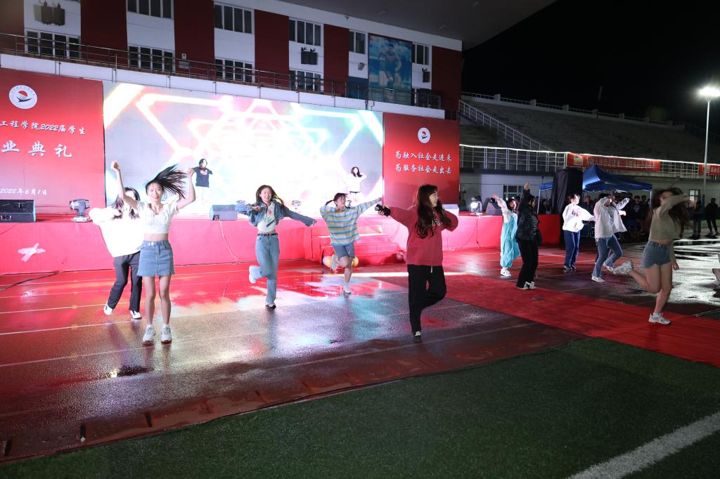 歌舞欢庆,异彩纷呈。师生代表合唱《一起向未来》,表达了对未来的美好憧憬;舞艺工坊社团带来舞蹈《无奋斗不青春》激情昂扬;师生深情朗诵《我们走过四年大学时光》催人泪下;基础部教师们演唱的《放心去飞》饱含期盼与祝福;全体毕业生们合唱《再见》表达即将告别校园,告别朝夕相处的老师和同学的不舍;全体辅导员们合唱《明天会更好》,殷切期盼毕业生们要敢于拼搏、无所畏惧、不断前行。
