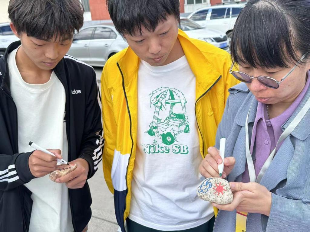 活动开始,赵芳老师和李格老师在现场积极参与,手持彩笔,用心作画。在老师们细致描绘下,手中的石块展现出精美的图案。