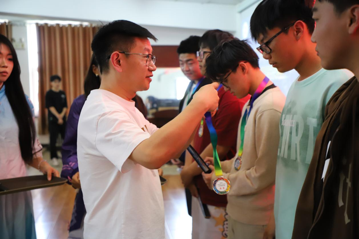 由康护工程系学生组成的“守护最好的坤坤队”队伍在王者荣挑战赛中斩获冠军,机电工程系学生组织的“广告位招租”队伍斩获亚军、信息工程系学生组织的“有请下一对”队伍斩获季军。学生工作处王睿、刘俊玮两位老师未获奖选手办法奖牌。