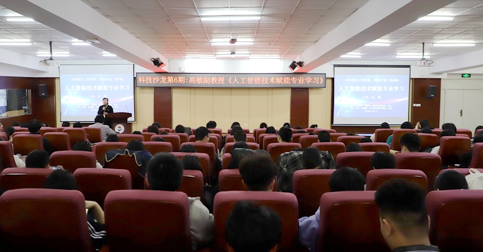 11月1日下午,由校学术委员会、科研处、校科学技术协会主办,学生工作处、校团委、大学生科学技术协会承办的第6期科技沙龙在图书馆501报告厅举行。本期科技沙龙邀请省科普专家、信息工程系高敏副教授作题为《人工智能技术赋能专业学习》的专题报告,来自全校各系的近300名学生参加。