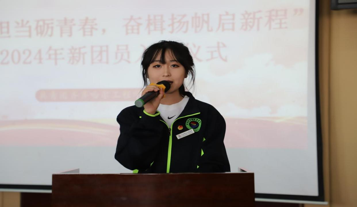 老团员代表、机电工程系机械221班孙显浩发言,他表示,入团不只是形式,更应履行团员职责,不断提高自身素质和修养,为学校发展贡献自己的力量。
