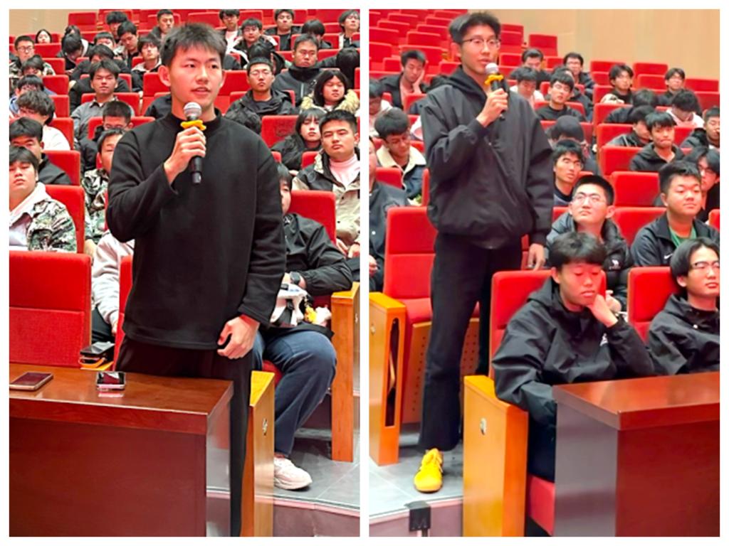 在互动提问环节,机电新生们围绕专业学习、职业规划、工匠精神践行等问题踊跃提问,将讲座中的思考转化为具体探索。当被问到“新时代的机械工匠,除了技术能力,还需要具备哪些素养,才能更好地为制造强国的建设贡献力量”时,马兵表示:“精度可以靠机器实现,但追求极致的匠心、攻坚克难的勇气,永远是机电人最核心的竞争力。”他鼓励新生们从大一开始参与学科竞赛、走进实训车间,在“拆零件、装设备、解难题”中培养动手能力与创新思维。