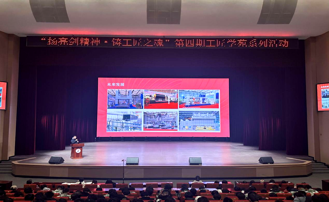 马兵以“传承红色基因,争做新时代机电工匠”为主线,运用鲜活案例与亲身经历,为学生构建起“精神传承、技术突破、使命担当”三位一体的认知框架。他从机械行业发展现状与技术创新趋势切入,结合自身数十年的一线实践,系统剖析了专业发展的未来前景。在展示齐齐哈尔二机床有限责任公司核心产品的同时,他结合企业服务航空航天等国家重点领域的实际案例,使学生直观感受到机械行业在国家产业体系中的关键地位。