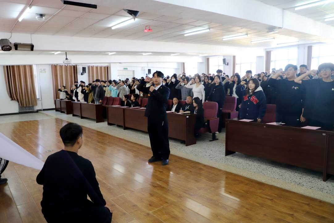 校团委学生副书记胡格睿带领全体学员宣誓。