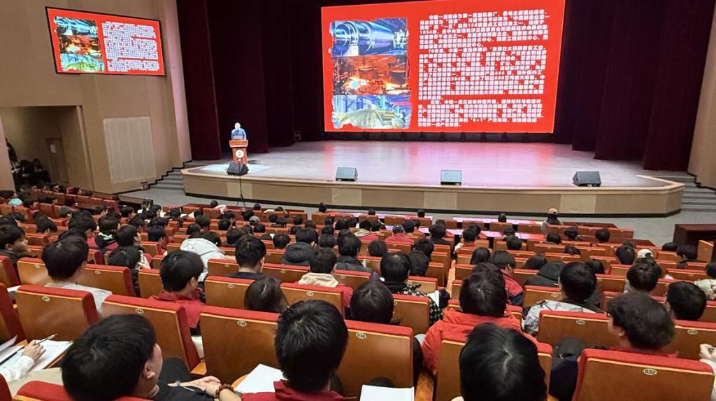 为深化“思专融合”协同育人实效、引导青年学子深刻理解、自觉践行工匠精神,11月21日下午,马克思主义学院在人民会堂举办“扬亮剑精神·铸工匠之魂”第五期工匠学苑系列活动。本次活动特邀全国人大代表、全国劳动模范、大国工匠年度人物、中国一重集团水压机锻造厂副厂长刘伯鸣担任主讲,以“以匠心·守初心”为主题,为师生们带来一场启迪智慧、感悟匠心的精彩讲座。马克思主义学院全体教师及2024级亚洲精品国产av影院学生共同聆听了讲座。