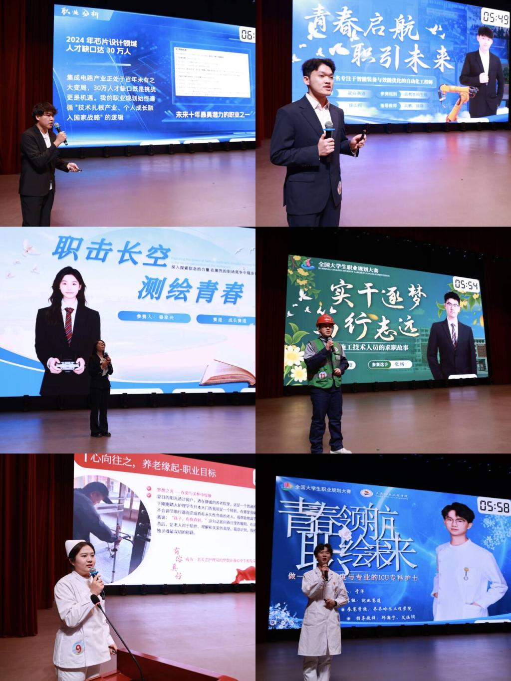 决赛现场,选手们通过主题陈述与评委答辩两个环节,围绕职业目标设定、行业调研分析、能力提升路径等核心内容进行了全面展示。他们的规划既有结合新质生产力、乡村振兴等国家战略的宏大视野,也有立足专业特色的个性化发展思考。选手们以清晰的职业定位、扎实的行动规划和饱满的青春热情,展开了一场关于未来的精彩角逐,充分展现了我校学子锐意进取、志存高远的精神风貌。