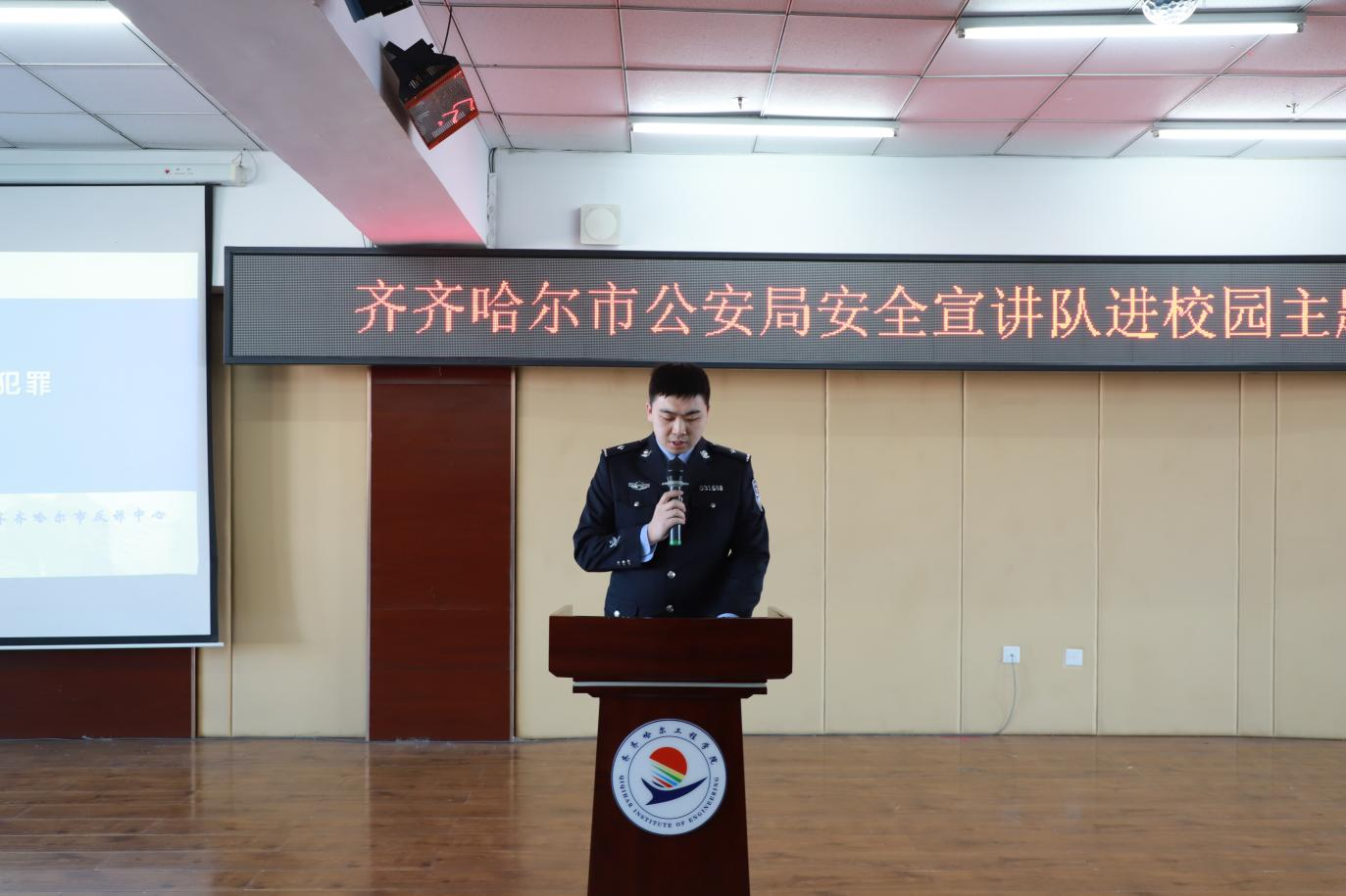 3月4日下午,学校邀请齐齐哈尔市公安局政保支队文保大队大队长李铁军、新闻宣传科科长侯巍、新闻宣传科宣传部主任姚磊等安全宣讲队成员一行7人进校园开展安全主题宣讲活动。学校保卫处和学生工作处管理人员及学生管理骨干等300余名师生参与,活动由保卫处处长成超主持。