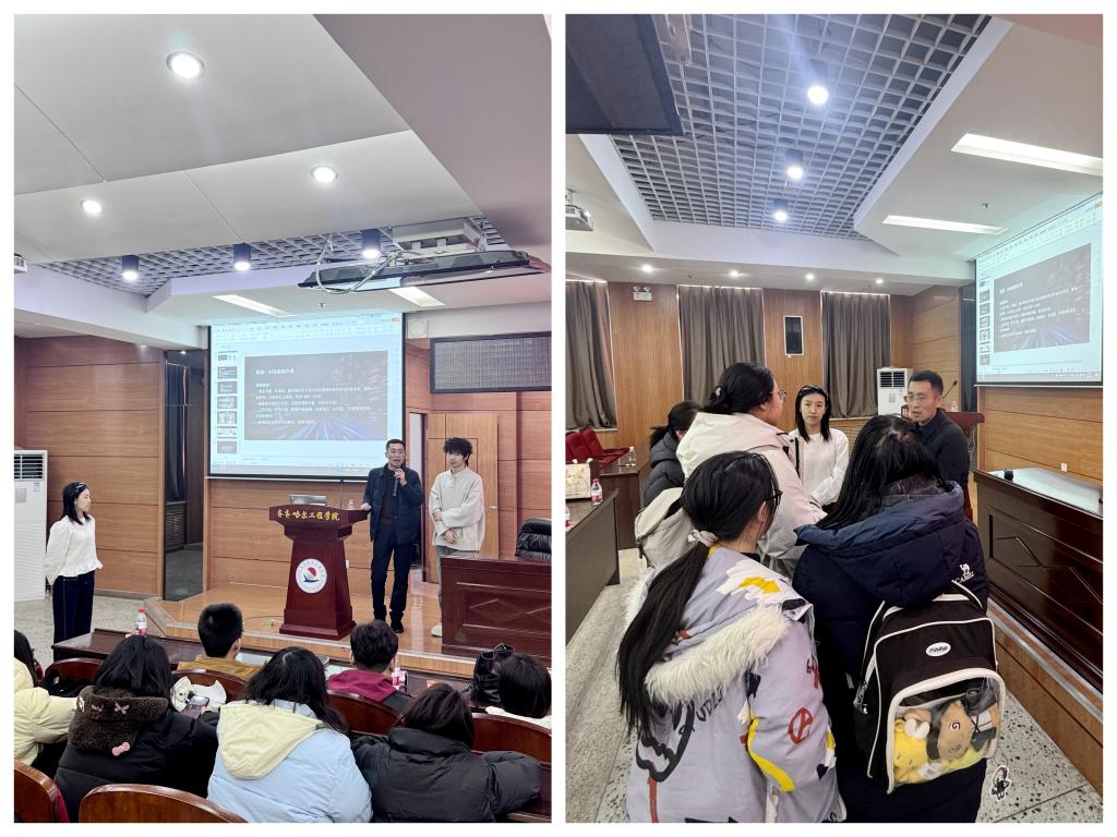 近日,学校宝贝把腿开大让我添添你视频特邀杭州聚学网络科技有限公司校企合作部经理苑海龙一行四人来校,在图书馆601室开展AI动漫行业专场宣讲会。此次宣讲由动画专业长佟鑫、视觉专业长王昀碧共同主持,150余名视觉与动画专业学生到场参会。