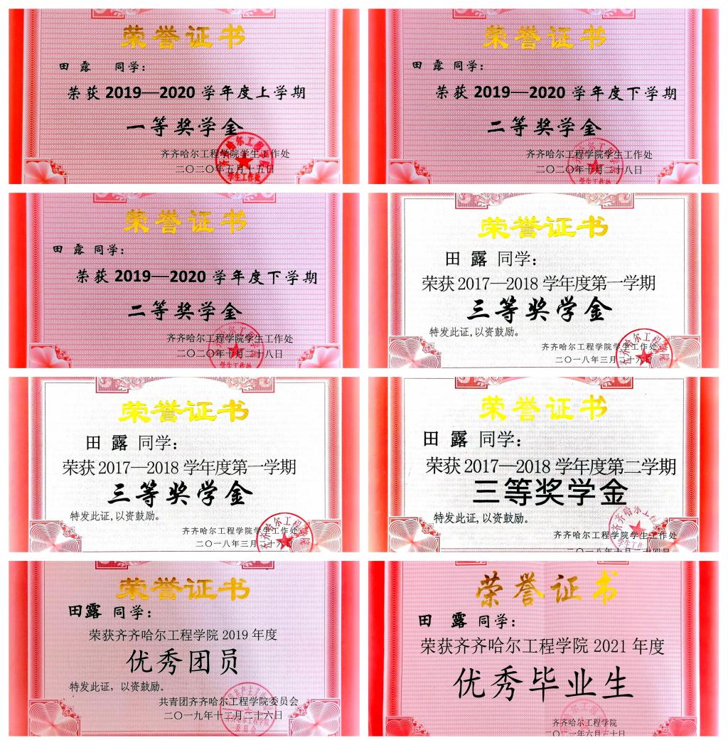 田露,女,中共党员,2021届视觉传达设计专业毕业生,在校期多次获得奖学金。2022年,她放弃城市高薪工作,参加“助力乡村振兴万人计划”,成为穆棱市共和乡碱场村的大学生村官。有人问她为什么选择乡村,她笑着说:“这里才是最大的‘设计工作室’——我要把整个村子设计成幸福家园。”