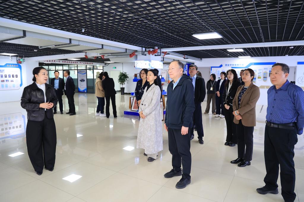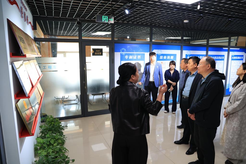 调研组一行在创业学院教师逯娅娜的引导下,深入科技园开展实地考察。期间,调研组系统听取了创业学院的发展历程与组织架构介绍,重点了解学校“一个核心、两类课程、三维保障、四个融合、五级孵化”的“12345”创新创业教育工作体系。通过参观大赛成果展区、走访双创团队工作室、调研入驻企业等方式,调研组全面了解学校在创新创业教育实践、校企合作、学生双创能力培养等方面取得的显著成果成效。