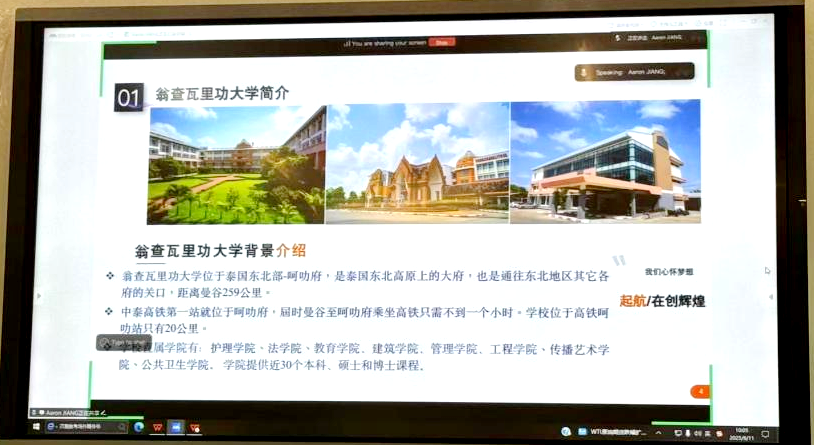 为深化国际教育合作,6月11日国产二区av麻豆与泰国翁查瓦里功大学在二号教学区2409会议室举办线上宣讲会,围绕教师学历提升、学术交流及联合培养等议题展开深入探讨。