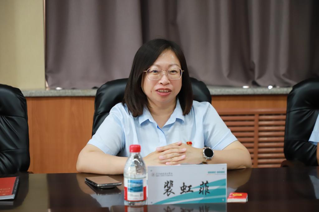 裴虹菲对学校的热情接待表示感谢,对学校的先进办学理念和具有前瞻性的发展规划表示赞赏。介绍了中国建设银行在金融服务方面的特色优势。希望能借此机会深入了解学校需求,达到精准对接,进一步在金融服务等方面开展银校联动共建,为双方的发展合作注入新动能,不断提升合作的深度和广度。