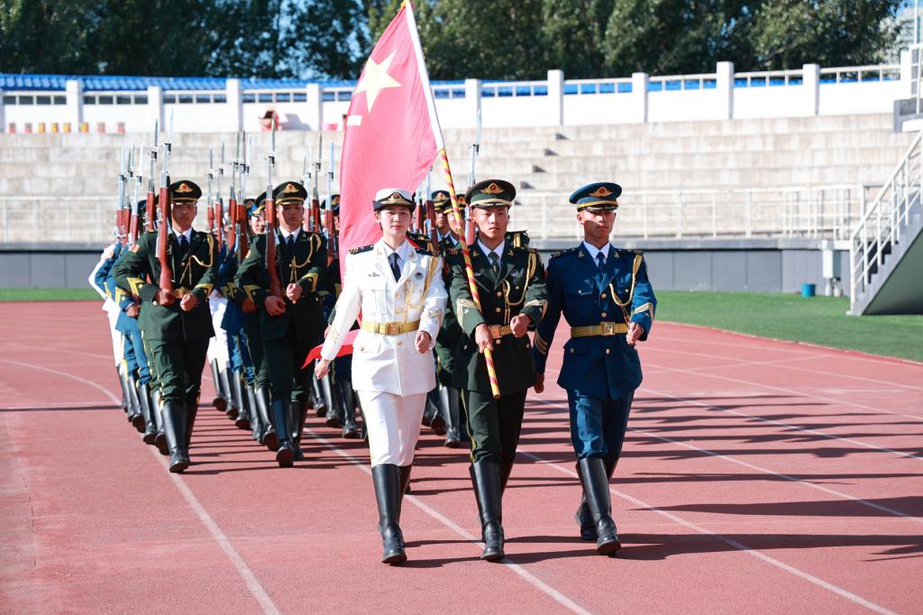 9月9日下午,2023级学生开学典礼暨“躬耕教坛,强国有我”教师节表彰大会在体育场举行,院长曹然彬、党委书记郭伟东、党委副书记张振笋、副院长白雪、副院长张静、院长助理陈景鑫及党委委员王丹、校务委员孟艳辉、理事会理事刘玉洁出席活动并在主席台就座。合作企业代表、各系领导、教师及全体2023级普本新生参加本次会议。会议由党委副书记张振笋主持。活动在鼓舞《少年中国说》拉开帷幕。全体师生齐唱国歌。 在学长教官团团长...
