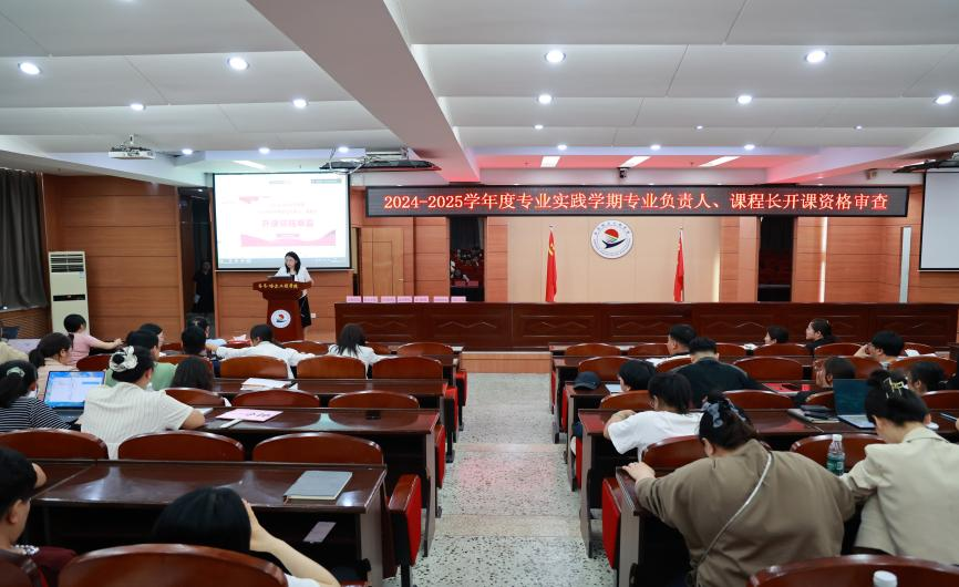 6月9日下午,学校在图书馆601报告厅举行2024—2025学年度专业实践学期专业长、课程长开课资格审查活动。理事长曹勇安应邀担任特邀评委。校长曹然彬,党委副书记、副校长陈景鑫,副校长白雪,副校长张静出席活动。各开课部门院长担任评委,教务处处长李文禹、各二级学院领导、全体专业负责人及任课教师线下参会,其他部门教职工通过线上方式参与活动。活动由教务处副处长郝丽娜主持。活动采用现场“双抽”形式,以二级学院为单...
