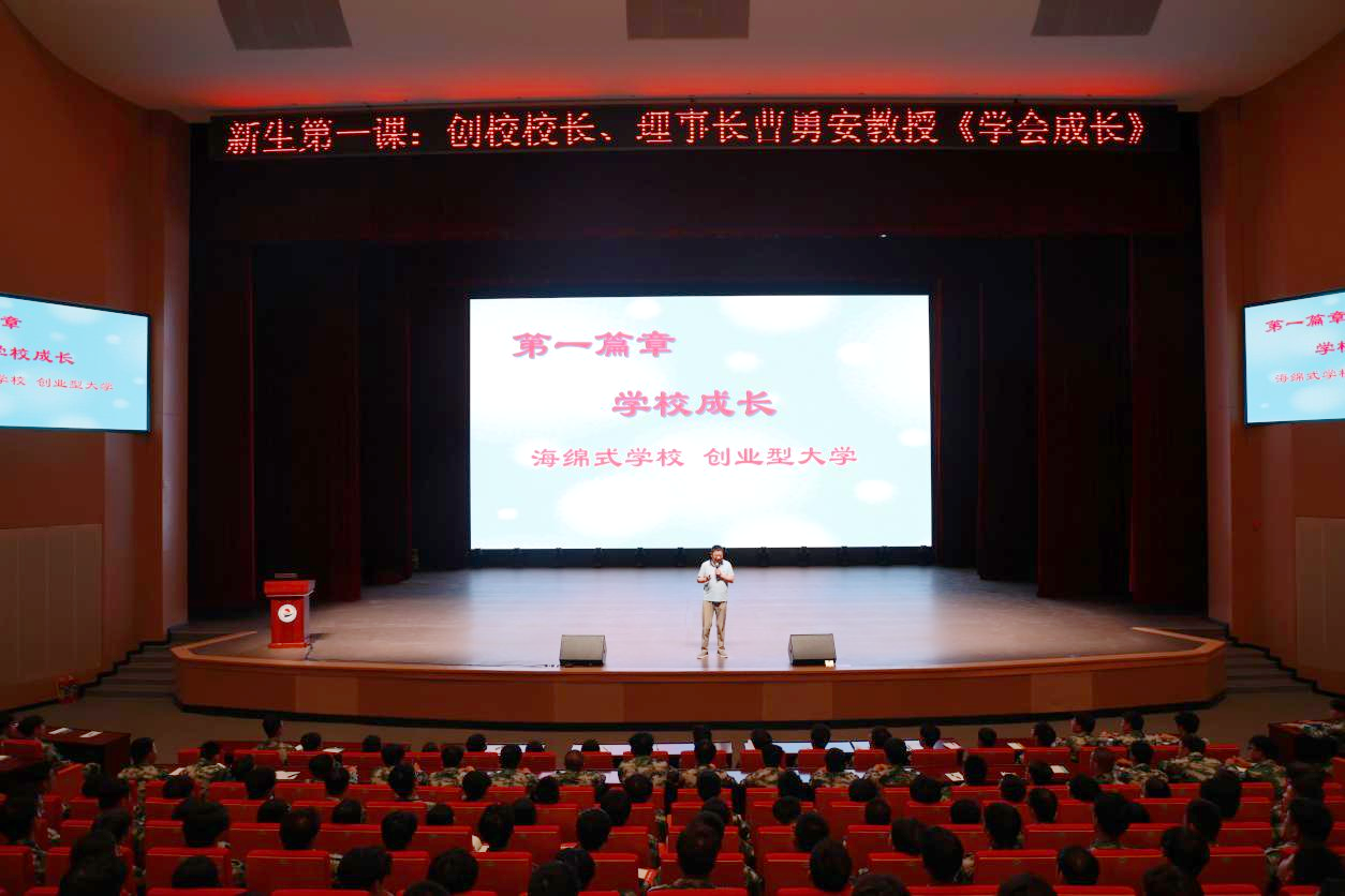 9月1日至4日,学校创校校长、理事长曹勇安教授在人民会堂为2025级全体新生作题为《学会成长》的专题讲座。讲座内容翔实、启发性强,正式拉开了2025级新生大学生涯的序幕。讲座内容分为“学校成长”与“个人成长”两大篇章。在第一篇章中,曹勇安凭借54年丰富的教学经验,引领新生穿越时间长河,生动讲述了学校的创校历程与发展脉络。通过昔日简陋校舍与如今现代化校园的鲜明对比,新生们深切体会到创校先辈的艰辛与坚守,并为自...