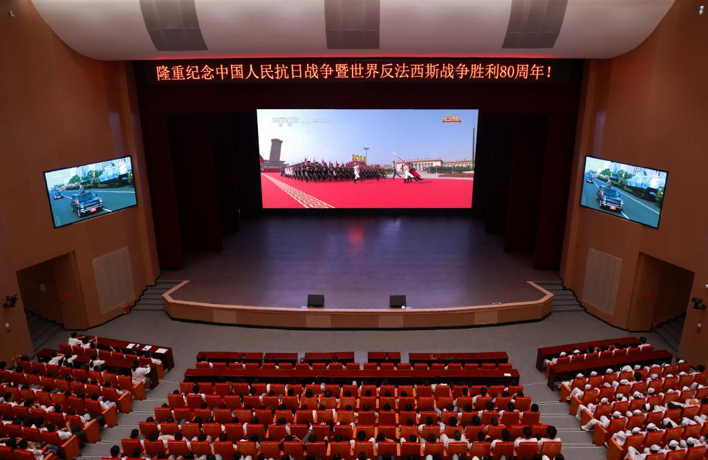 9月3日上午,纪念中国人民抗日战争暨世界反法西斯战争胜利80周年大会在北京天安门广场举行,为深切缅怀革命先烈,弘扬伟大抗战精神,激发全校师生爱国热情和民族自豪感,学校组织全体师生观看。2000多名新生由各学院组织观看,其余师生在人民会堂集中观看,共同见证这一庄严时刻,向胜利致敬。随着阅兵仪式的正式开始,屏幕上依次展现出45个威武雄壮的受阅方(梯)队,涵盖了陆军、空军等多兵种及其新型现代化装备,充分展现...