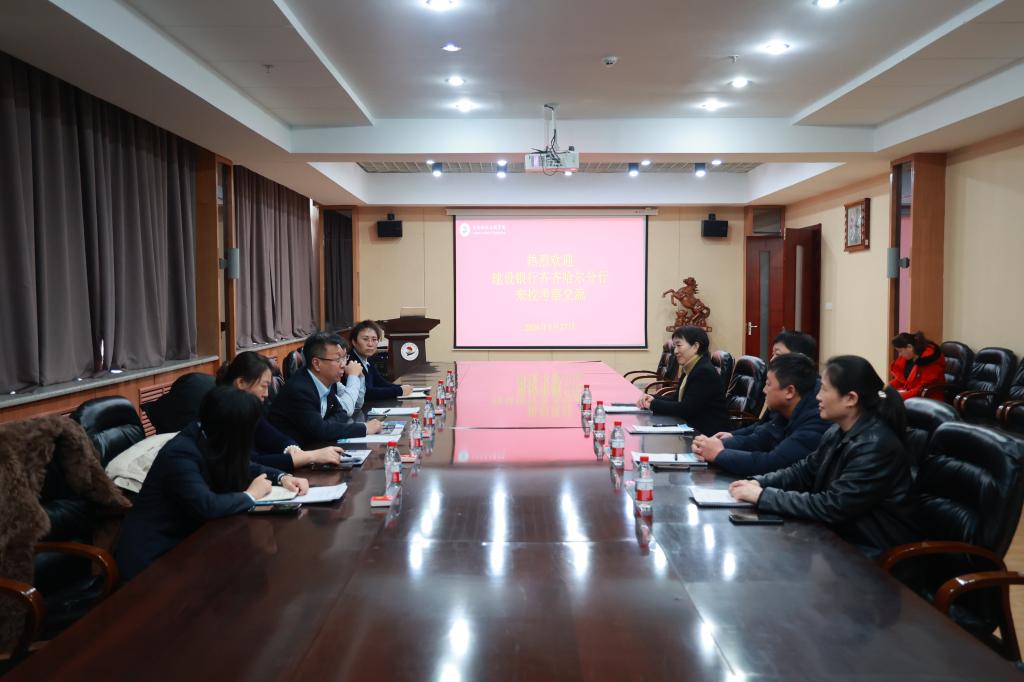 1月27日下午,中国建设银行齐齐哈尔分行行长张宏杰、副行长刘畅一行来校考察交流。学校创校校长、理事长曹勇安,副校长崔晓东,总会计师姜岩热情接待,财务处处长孙爱萍陪同座谈并参与实地考察。座谈会在图书馆603南会议室召开。曹勇安对张宏杰一行的到访表示欢迎,简要介绍了学校的创校历程、办学理念,分享了自己深耕教育领域数十载、坚守教育初心的情怀与担当。希望以此次考察交流为契机,推动双方建立常态化、长效化合作...