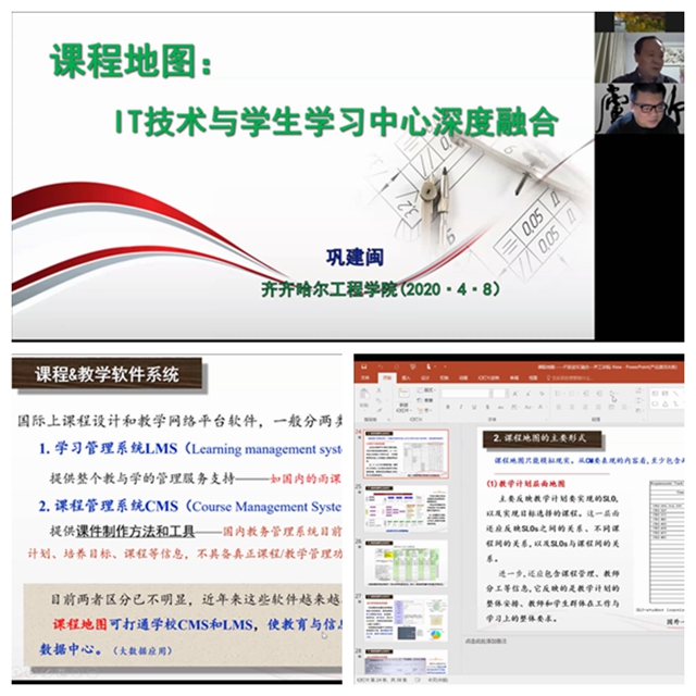 4月8日晚,第六期教学工作坊在线举办,教育部规建中心专家、德州学院原副院长巩建闽教授应邀主讲。曹然彬院长、蒋春艳副院长与255位教学管理干部、教师一起参与研讨交流,张振笋副院长主持活动。 以“课程地图—IT技...