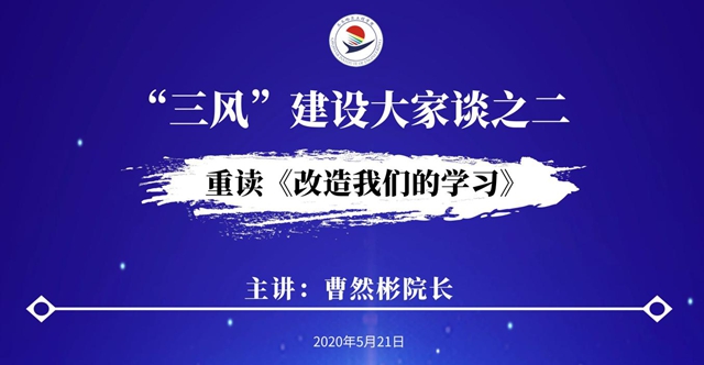 5月21日下午,“三风”建设大家谈第二讲通过在线方式举行,曹然彬院长作“重读《改造我们的学习》”专题辅导报告,近400位教职工参加学习,张振笋副院长主持学习活动。 曹院长在辅导中回顾了我校组织教职工集中学习《...