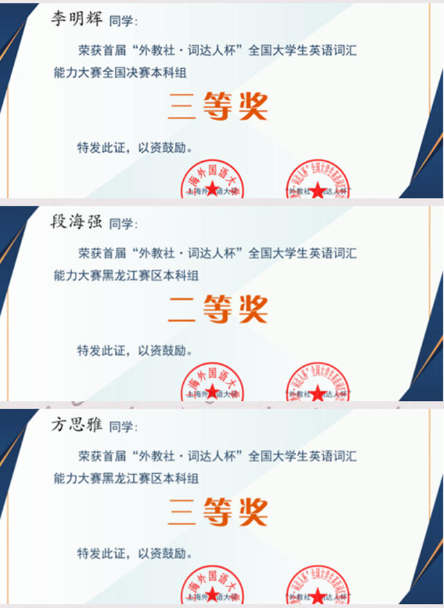 为期两个月的首届全国首届“外教社·词达人杯”全国大学生英语词汇能力大赛,经历了学校初赛、黑龙江省赛和全国决赛,于6月6日落下帷幕。共有1690名学生参加5月18日举行的学校初赛,前200选手进入5月30日举行的黑龙江...