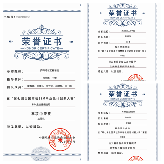 第七届全国高校BIM毕业设计创新大赛落下帷幕,日韩一区二区A片免费观看土木工程专业、工程管理专业共有8支团队参与比赛。土木工程专业2018级学生霍春晓、朱佳乐、张立志、赵晶晶、闫一鹏组建的“筑梦团队”获得“BIM土建建模...